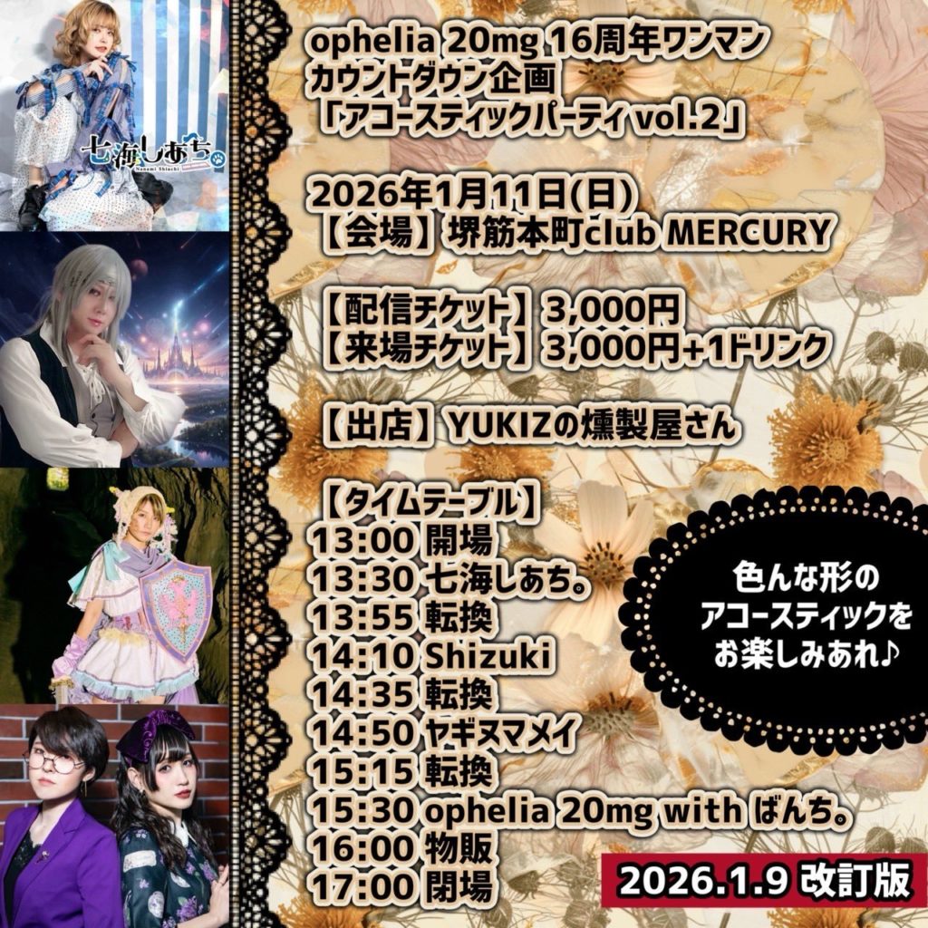 ophelia 20mg 16周年ワンマン カウントダウン企画 「アコースティックパーティ vol.2」