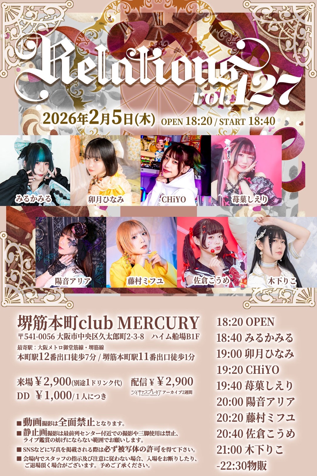 ※情勢に応じてドリンク販売は原則的に本番5分前 / 転換、換気中 / 公演終了後20分間のみとさせて頂きます。