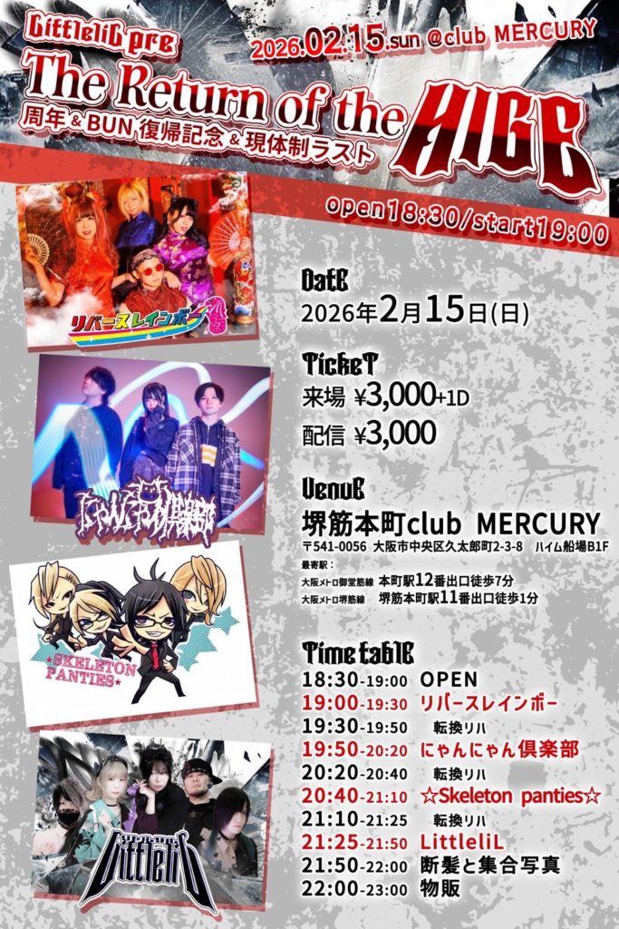 【LittleliL presents 【The Return of the HIGE】 周年&BUN復帰記念&現体制ラストぶんちゃん復帰&生誕ライブ】