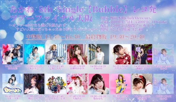 あかね 8th Single 【Bubble】レコ発 ツアーファイナル大阪 〜オファーかけたら誰にも断られずすごい人数になっちゃったありがとうスペシャル〜